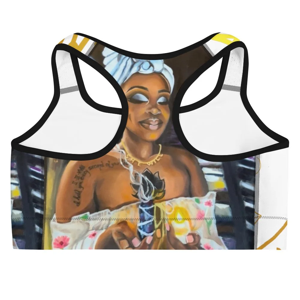This gorgeous sports bra is made from moisture-wicking material that stays dry during low and medium intensity workouts. The bra has support material in the shoulder straps, double layer front, and a wide elastic band to ensure constant support.